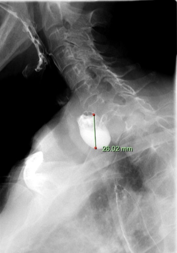 Zenker’s diverticulum (also known as an oesophageal pouch, grey arrow Figure A below) may cause difficulty with swallowing, choking attacks, regurgitation and halitosis (bad breath). Most of these symptoms are due to retention of food debris or liquids within the pouch.